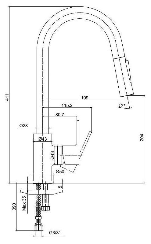 - Гибкий излив:нет