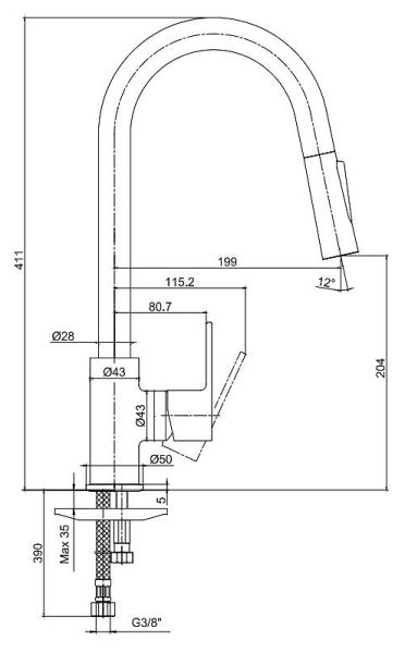 - Длина излива: 19.9 см