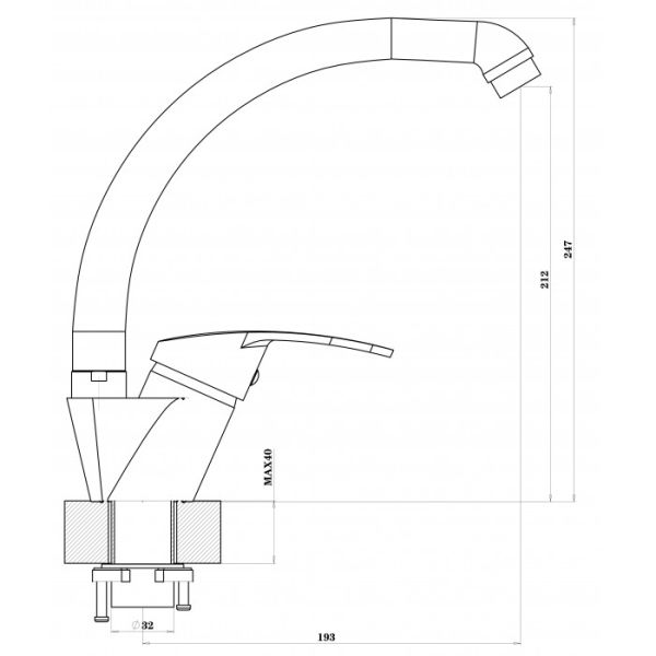 • Высота смесителя: