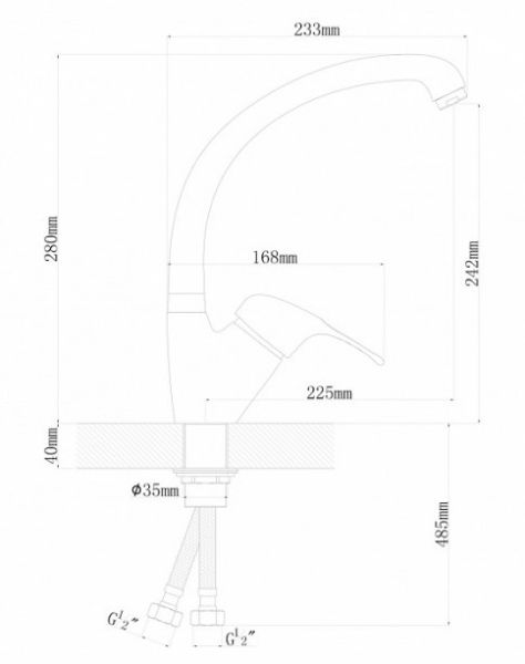 • Высота смесителя: