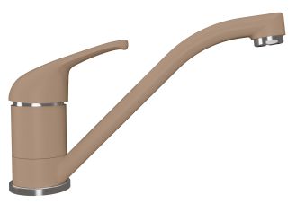 Смеситель однорычажныи? с низким изливомМатериал - материал корпуса латунь , материал излива нерж. стальПоворотныи? изливКерамическии? картридж 40ммГибкая подводка 50 см