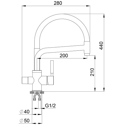 Смеситель для кухни. Цвет-черный. В комплект поставки входит: смеситель, гибкая подводка, комплект креплений, переходник для подключения фильтра с питьевой водой