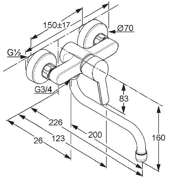• настенный однорычажный смеситель для кухни DN 15