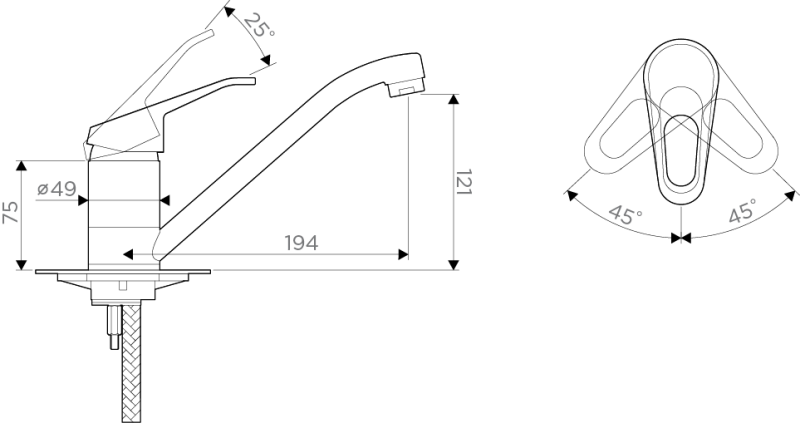 • Гибкий излив: