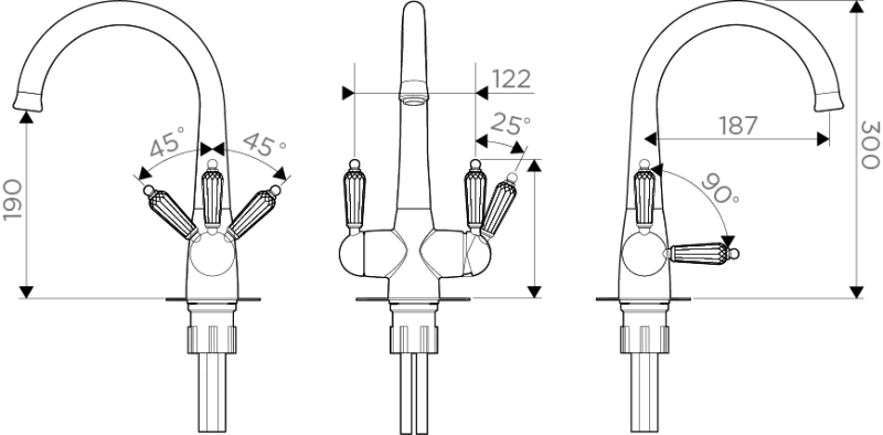 • Ручки смесителя украшены кристаллами Swarovski; • Цвет: 022.Античная Латунь • Технология PURE LIFE®: Подключение фильтра для очистки воды. Фильтрованная вода подается по отдельной трубке и не смешивается с водопроводной водой; • Высококачественная латунь сохранит воду чистой и здоровой; • Аэратор произведен из специального полимерного материала, благодаря чему на нем никогда не появится известкового налета и ржавчины; • Коробка внутри проложена поролоном, который обеспечит сохранность изделия при транспортировке; • Полный набор креплений, соединительных шлангов, подробная инструкция и гарантийный талон в комплекте