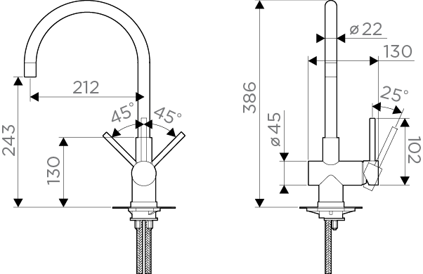 - Высота смесителя:38.6
