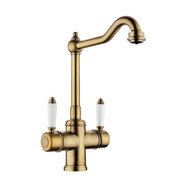 • Классический дизайн и удобство использования, благодаря высокому изливу; • Цвет: 022.Античная Латунь; • Технология PURE LIFE: Подключение фильтра для очистки воды. Фильтрованная вода подается по отдельной трубке и не смешивается с водопроводной водой; • Высококачественная латунь сохранит воду чистой и здоровой; • Аэратор произведен из пластика, благодаря чему на нем никогда не появится известкового налета и ржавчины; • Коробка внутри проложена поролоном, который обеспечит сохранность изделия при транспортировке; • Полный набор креплений, соединительных шлангов, подробная инструкция и гарантийный талон в комплекте.