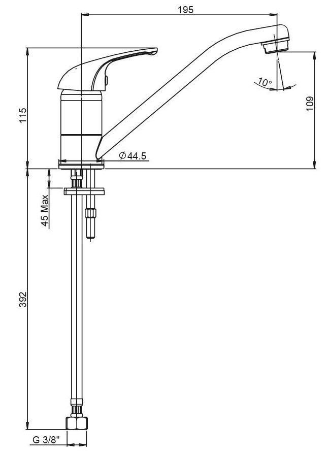 • Высота смесителя: