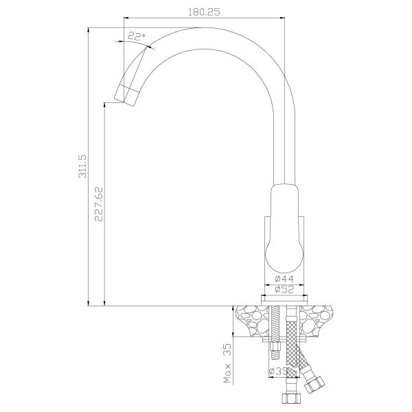 • Высота смесителя: