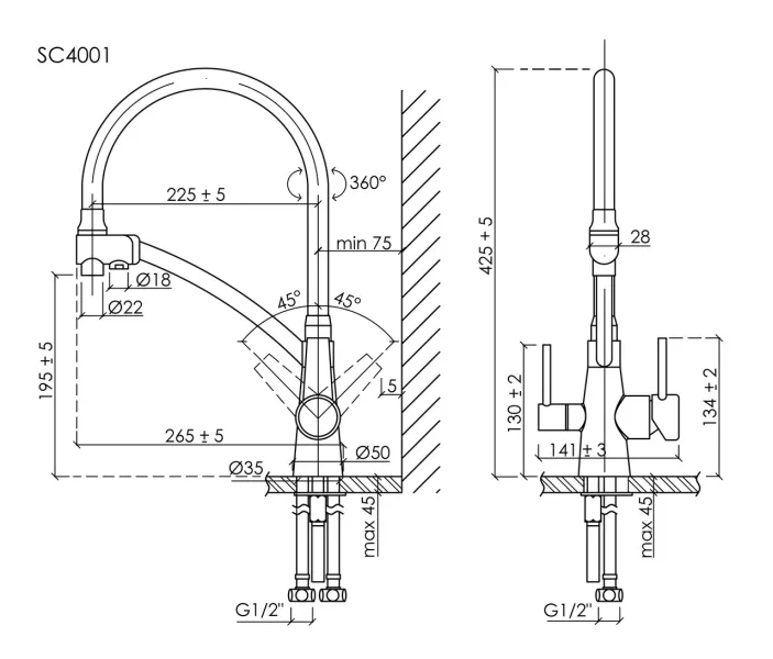 - Длина излива, см:22.5