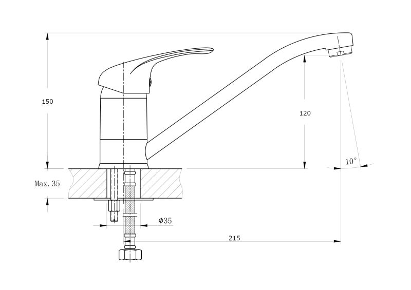 • Высота смесителя: