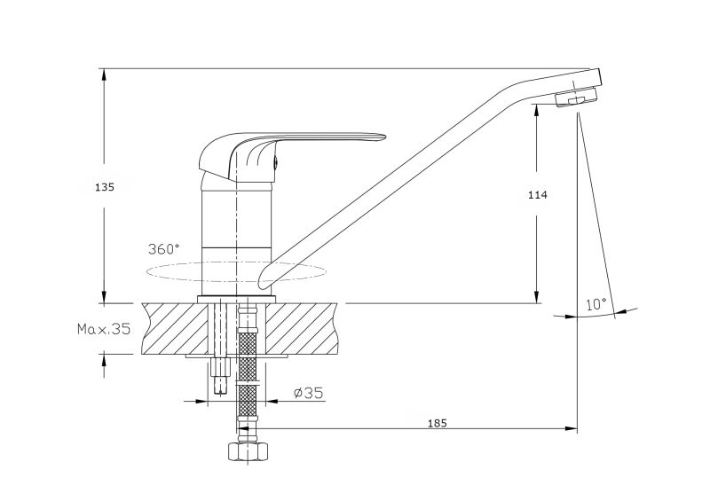 • Высота смесителя: