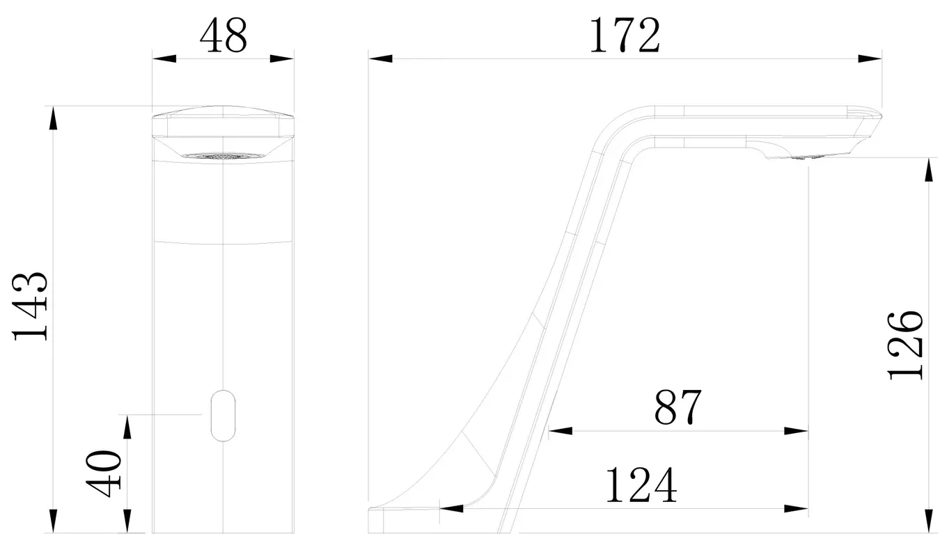 • Длина излива, см: