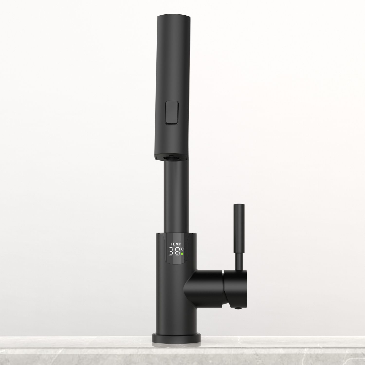 Смеситель для раковины датского производителя Black&White в черном матовом цвете. В корпусе изделия прослеживаются нотки классических форм и современного стиля. Изготавливается из сантехнической латуни для увеличенного запаса прочности и исключения вероятности появление коррозии. Управление потоком воды осуществляется с помощью керамического картриджа повышенной пропускной способности. Инновационным решением можно отметить электронное табло, расположенное в нижней части корпуса, на которое выводится показание температуры воды с подсветкой красного, зеленого и синего цвета. В данном продукте реализован многофункциональный излив с возможностью настройки высоты и длинны с помощью вытяжного шланга. Аэратор смесителя оборудован несколькими видами подачи воды, которые переключаются с помощью кнопки расположенной сверху корпуса.