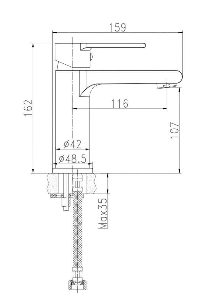 • Высота смесителя: