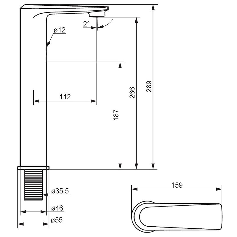 • Высота смесителя: