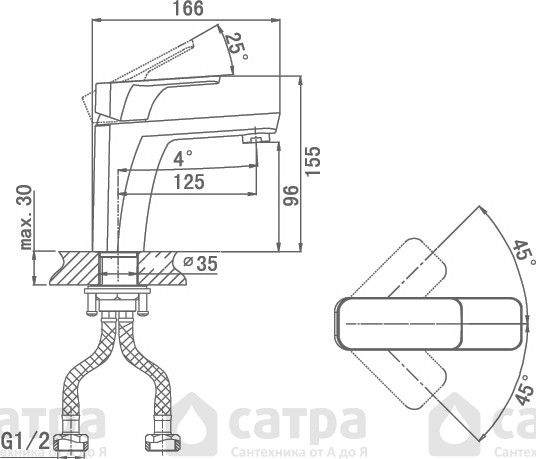 • Высота смесителя: