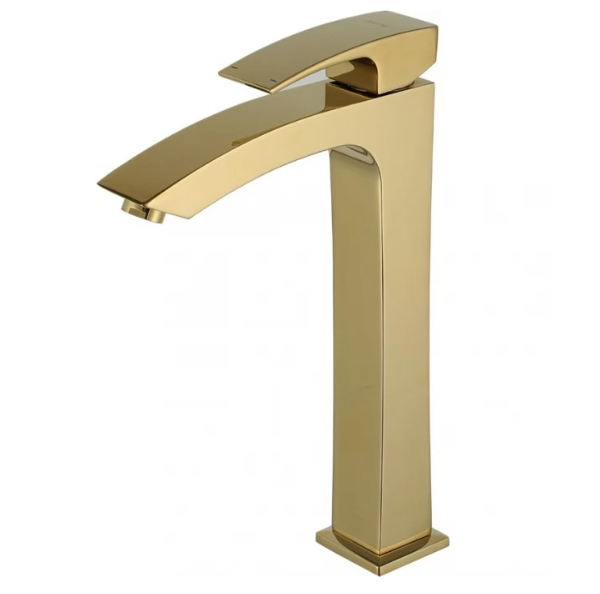 Смеситель для умывальника Gappo Jacob G1007-32 - однорычажная латунная модель с высоким изливом, для монтажа на столешницу, подходит для высоких умывальников. Цвет - золото.