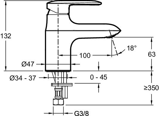 • Высота смесителя: