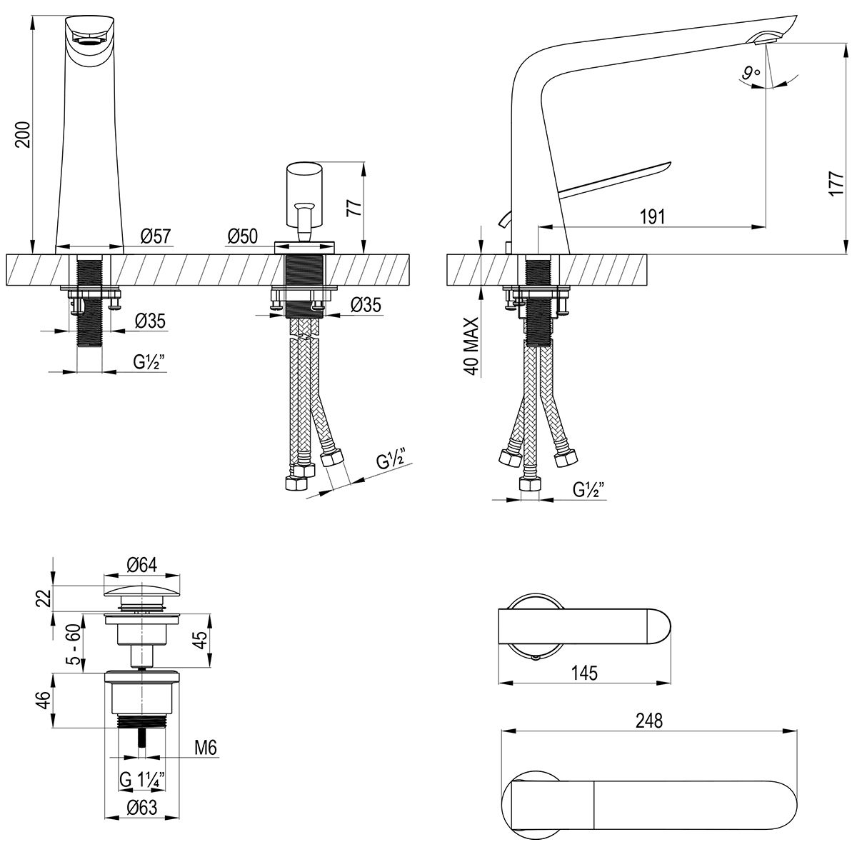 • Высота смесителя: