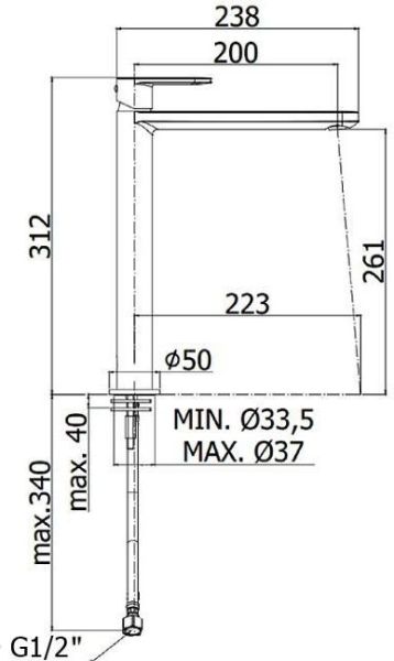 • Высота смесителя: