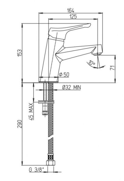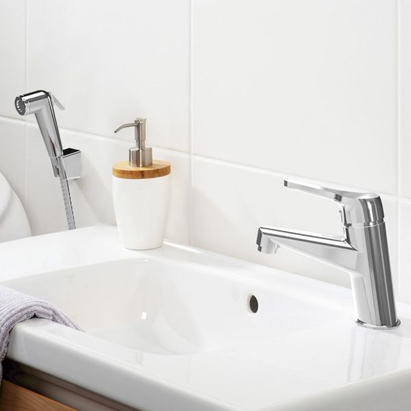 • Аэратор Neoperl под наклоном (струя отводится дальше от края раковины) наполняет воду кислородом, снижает напор воды, вследствие чего становится возможной существенная экономия воды. Сеточка легко очищается пальцем.