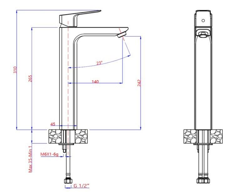 • Высота смесителя: