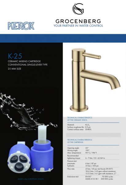 Смеситель для раковины стандартный Grocenberg GB2099GL золотой брашированный купить