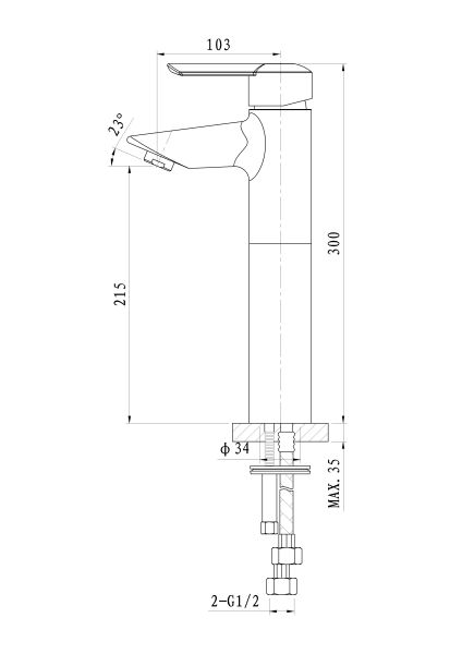 Смеситель для раковины высокий WONZON & WOGHAND BAROQUE, Хром (WW-191104-CR)