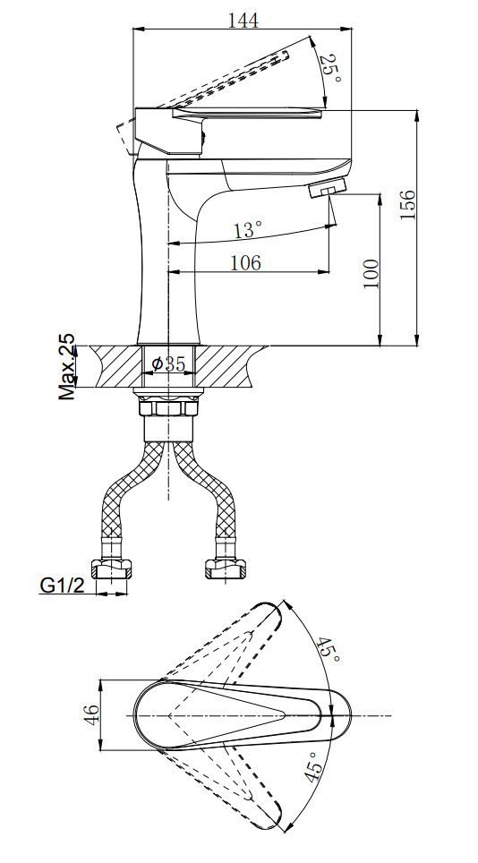Смеситель для раковины RUSH арт. DN0335-11 из коллекции Denis с металлической ручкой, изготовлен из высококачественной латуни и имеет рычажное управление.В смеситель установлен картридж D-35 с керамическими пластинами. Высота смесителя 156 мм. Излив литой, неповоротный 100 мм. Высота излива до аэратора 106 мм. Аэратор изготовлен из пластика с нержавеющим корпусом, угол наклона - 13 гр. В комплекте универсальная присоединительная группа для установки на горизонтальную поверхность, гибкая подводка с латунными гайками 40 см - 2шт, фум-лента, индивидуальный пакет, паспорт, гарантийный талон.