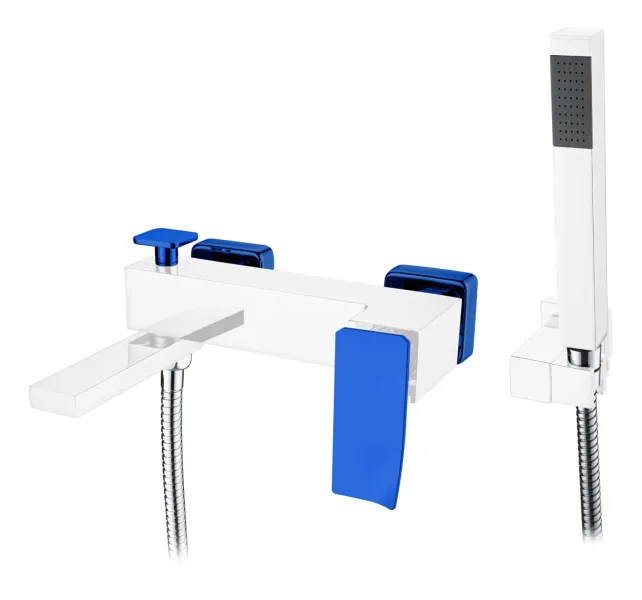 Смеситель Boheme Q для ванны, с душевым гарнитуром, хром, синий, 143-CRUV.2
