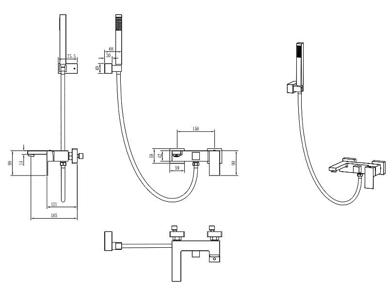 Смеситель для ванны Boheme Qubic 473-G с душевым гарнитуром.Характеристики:Цвет: золото.