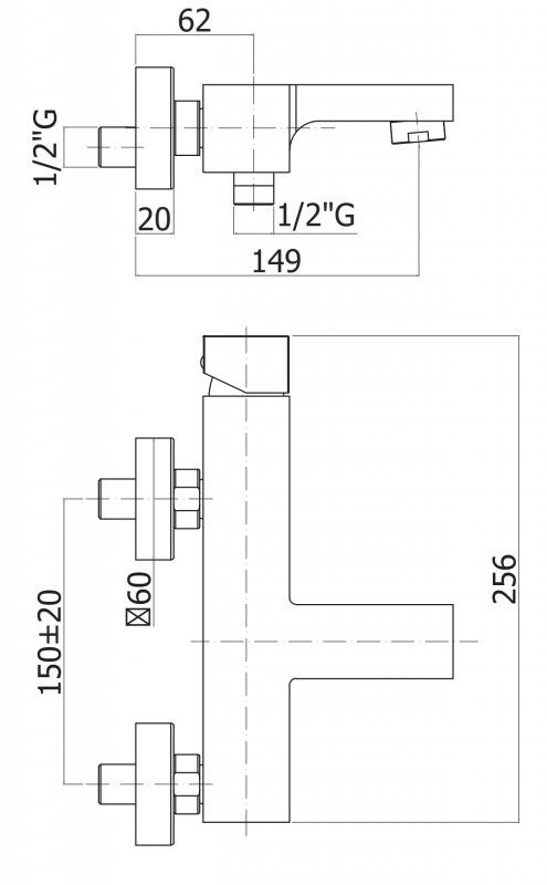 Смеситель для ванны и душа однорычажный, хром Cezares EFFECT-VM-01