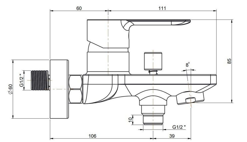 Хромированный смеситель SONATA для ванны выполнен в современном стиле и предусматривает удобное подключение гибкого душа.