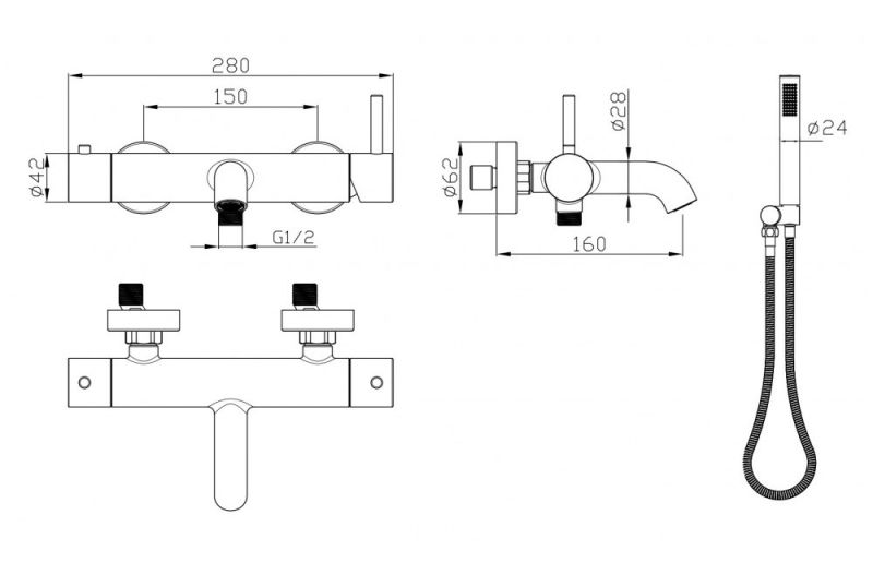 Смеситель для ванны с душем Milacio MCU MCU.350.MB чёрный матовый