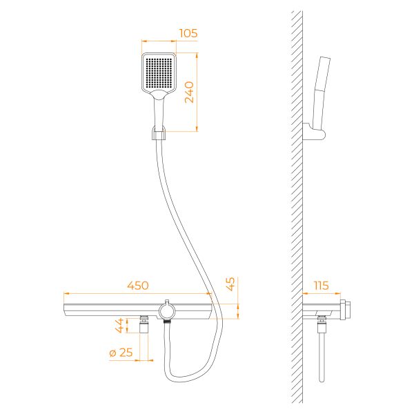 • Держатель из прочного ABS-пластика для ручного душа;