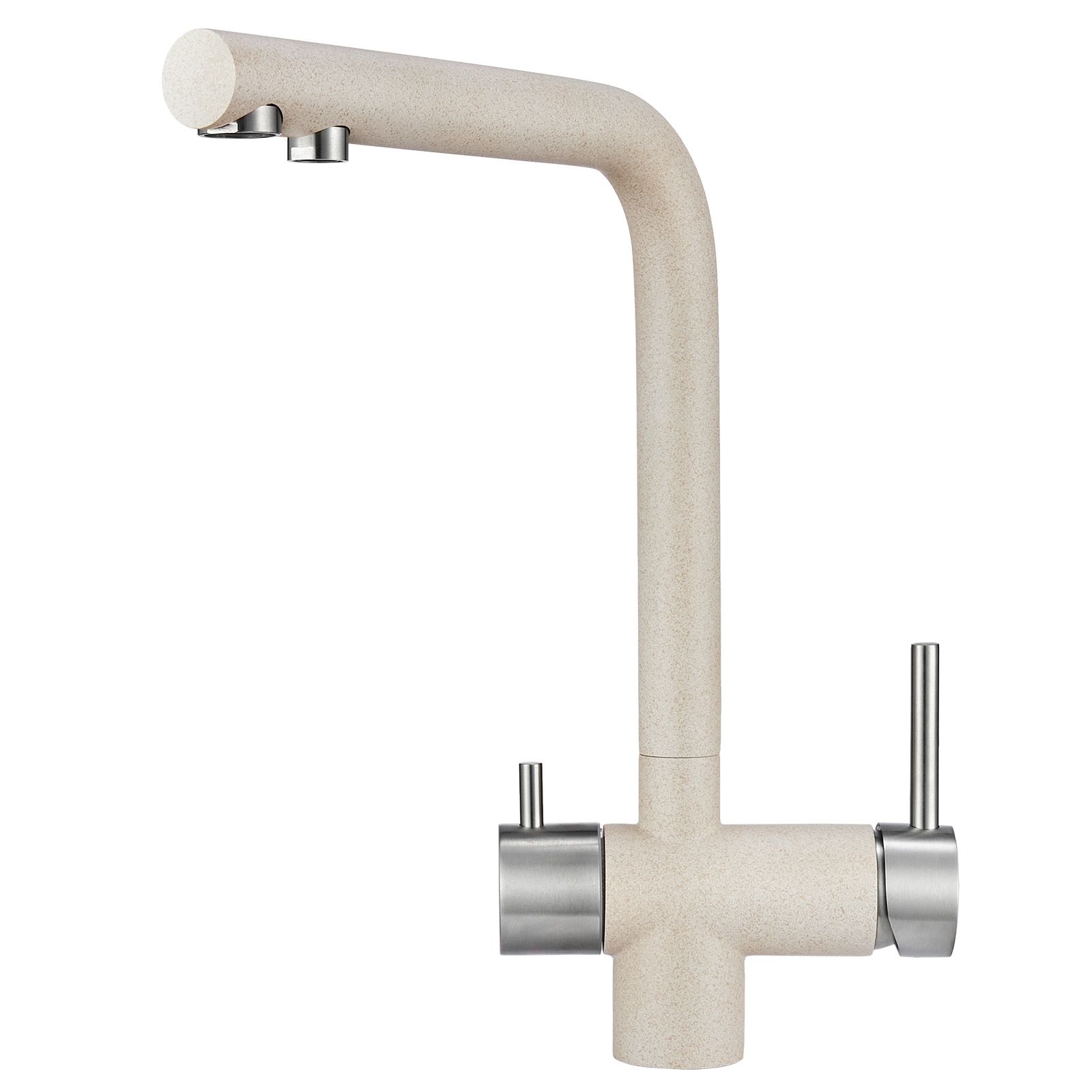 Смеситель для кухонной мойкиЦветовая гамма: Алюминиум, Классик, Антик, Песок, Пирит, Базальт, Арктик, Эспрессо, Графит, Черный, ШварцГибкая подводка (3 шт.); набор для крепления; прокладки уплотнительные (2 шт.); аэраторГарантийный срок от производителя - 5 лет