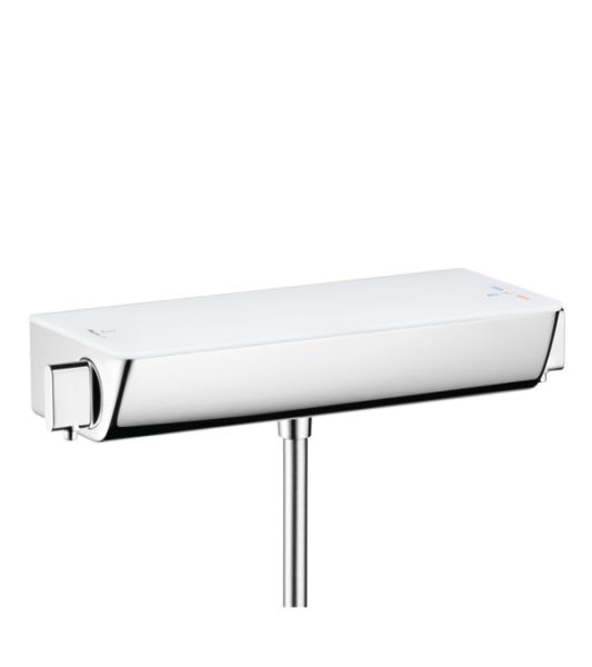 Смеситель Hansgrohe Ecostat Select 13161400 для душа с термостатомХарактеристики продукта:-1 потребитель-предохранительный ограничитель при 40°C-из безопасного стекла-поверхность полочки: хром или белый-кнопка Ecostop ограничивает расход воды до 10 л/мин