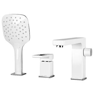Смеситель на борт ванны Gappo G1117-8 - стильная латунная модель для установки на борт ванны, на 3 отверстия. Оригинальный излив, управление однорычажное, гибкая подводка воды, удобная душевая лейка. Цвет - белый.