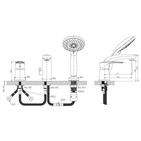 Смеситель на борт ванны Rossinka S35-39 Хром