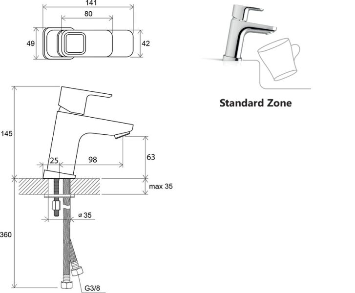 • исполнение: смесители 10° имеют стандартную или увеличенную высоту