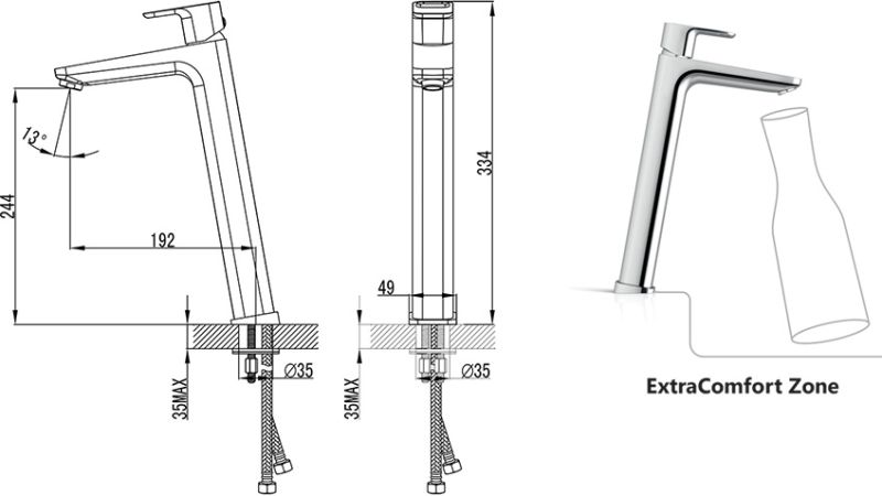 • ExtraComfort Zone - дополнительная высота смесителя