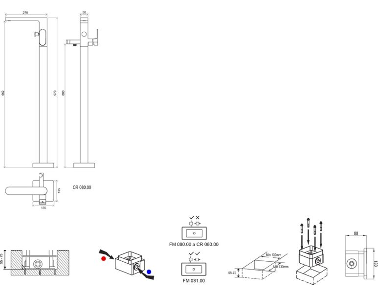 Для подключения смесителя водопровод должен быть вмонтирован в пол и подведён к месту расположения ванны.