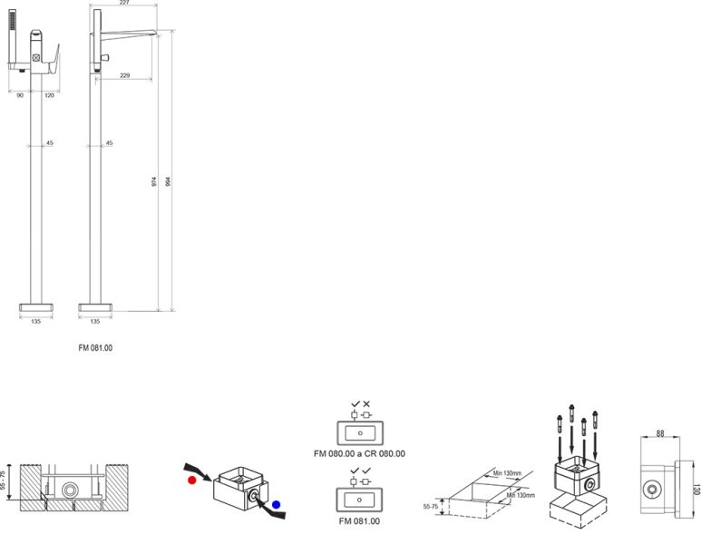 • подходит: к отдельно стоящим ваннам