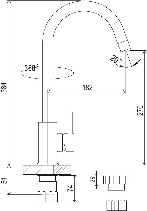 • соединительные шланги: гибкий 400 мм, диаметр G3/8