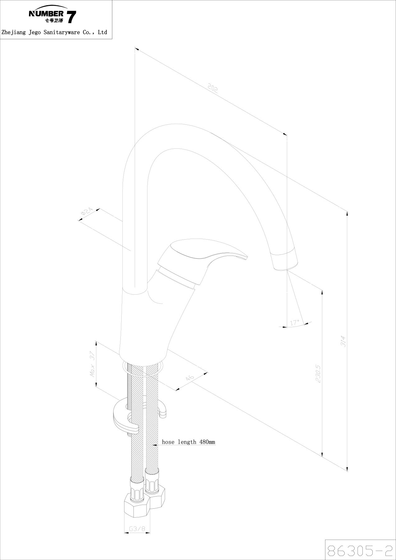 • Высота смесителя: