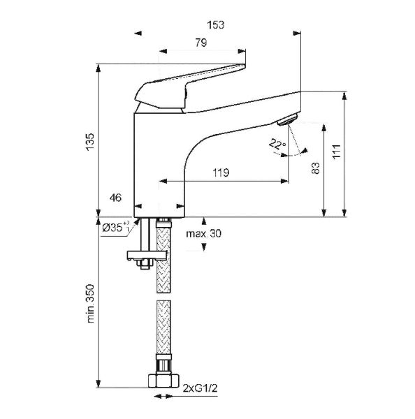 FINE GRANDE Смеситель для умывальника, высота 136 мм.