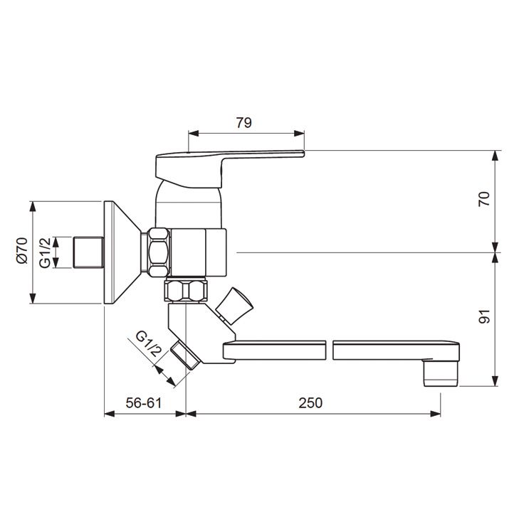 Переключение ванна/душ: ручное (позволяет использовать функцию “душ” даже при очень низком давлении воды)