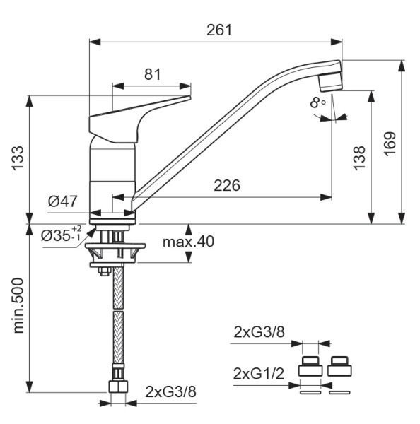 Длина излива, мм: 226