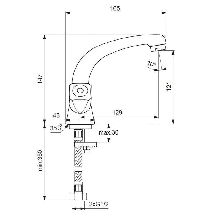 Длина излива, мм: 129